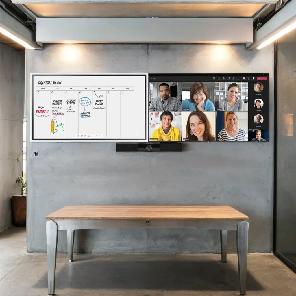 Rust uw vergaderruimte uit met dit dubbelschermpakket Samsung x Poly. Dit pakket is ideaal voor hybride ruimtes, bedoeld voor persoonlijke ontmoetingen of vergaderingen op afstand. Het is speciaal ontworpen om te voldoen aan de behoeften van bedrijven die op zoek zijn naar praktische, efficiënte en veelzijdige apparatuur.