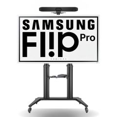 Kit Video Conference met smart board Yealink MeetingBoard 65 of 86 inch. Videoconferenties mogelijk draadloos vanaf elk platform met de dongle. Rolstandaard inbegrepen.