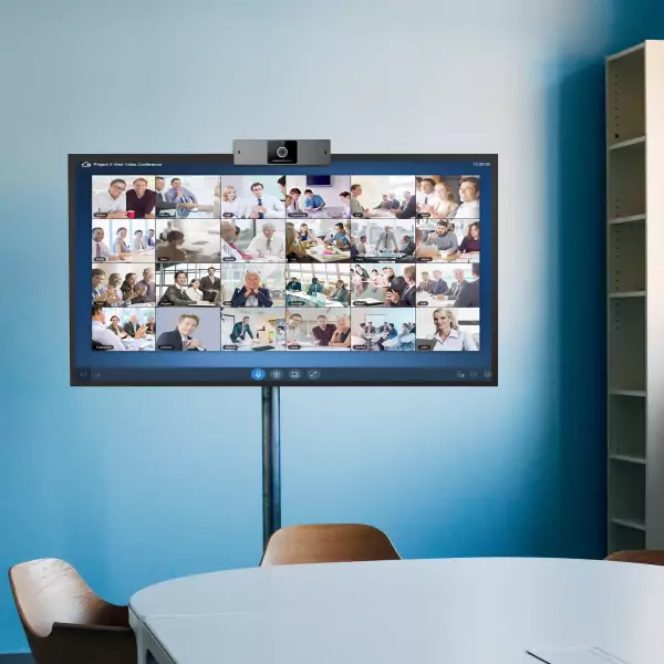 Voor telewerkers en kleine vergaderruimtes is de GVC3212 camera van Grandstream het ideale hulpmiddel. Eenvoudig te installeren, je plaatst hem op het scherm dankzij de verstelbare steun en sluit hem aan via de USB- en HDMI -poorten.