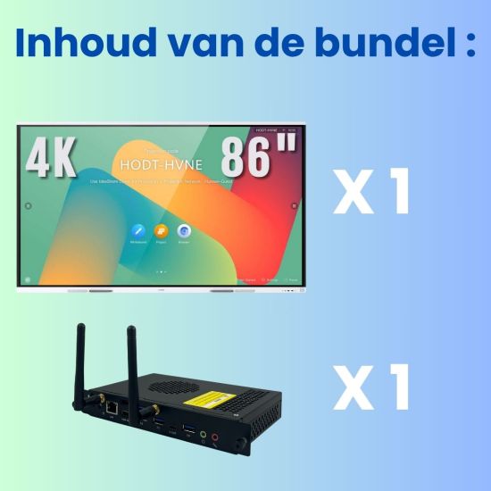 - De mini PC in OPS-formaat is compatibel met het display. Het integreert een Windows 11 IoT-besturingssysteem om uw interactieve display te beheren, net als uw persoonlijke PC.