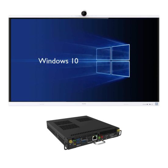 Een van de belangrijkste voordelen van de Huawei IdeaHub S2 is de mogelijkheid om een mini PC in OPS-formaat (Open Pluggable Specification) te integreren, wat de video conference-ervaring aanzienlijk verrijkt. Deze module, die direct achter het scherm wordt geplaatst, maakt het mogelijk om professionele software te installeren (Office 365-suite, videoconferentieplatforms, enz.). zonder dat u een externe computer hoeft aan te sluiten. Het voordeel is duidelijk: alles is gecentraliseerd binnen hetzelfde apparaat, waardoor onnodige kabels worden geëlimineerd, de opstarttijden worden verkort en het risico op een verbroken verbinding tijdens een vergadering wordt geminimaliseerd. .