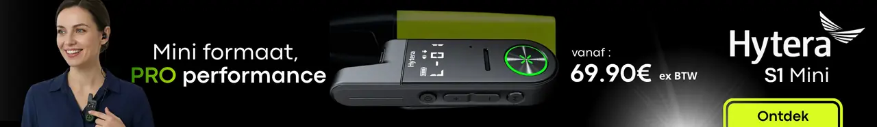 Promotioneel "Team" pakket 16 radio's Hytera S1 Mini + 16-slots oplaadstation | PMR446 analoog, 16 kanalen, oplaadbaar€1.198,89 €1.450,73 Normale prijs € 1.277,00 €1.545,17Vergelijk het product -
