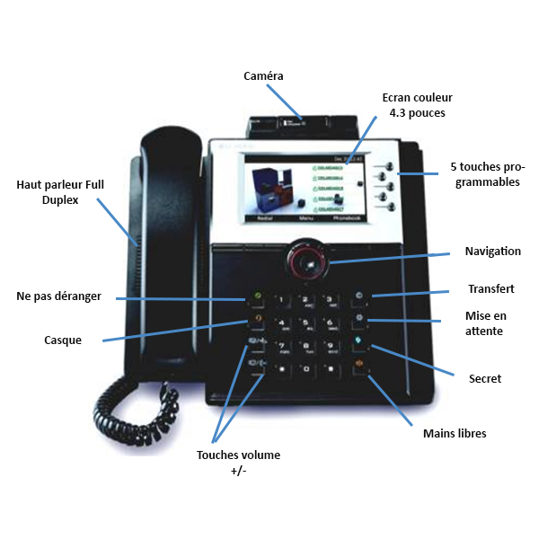 Uitgerust met 5 programmeerbare toetsen en een headset RJ9 -aansluiting , maakt de IP8850E-telefoon het gemakkelijker om uw oproepen te beheren door functies zoals doorschakelen, doorverbinden, 3-weg conferentie, nummerherkenning te integreren