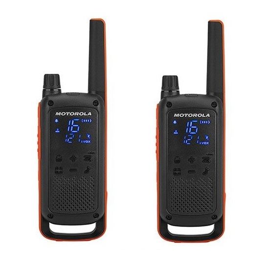 Met een bereik van maximaal 2 kilometer in volledig open terrein, van 500 tot 1500 meter in de stad, is de Motorola T82 een van de belangrijkste producten in het assortiment van Portofoons walkies zonder licentie ## #108 . De Motorola T82 is uitgerust met Nimh-batterijen die 14 uur autonomie bieden, een led-zaklamp en een trilfunctie .