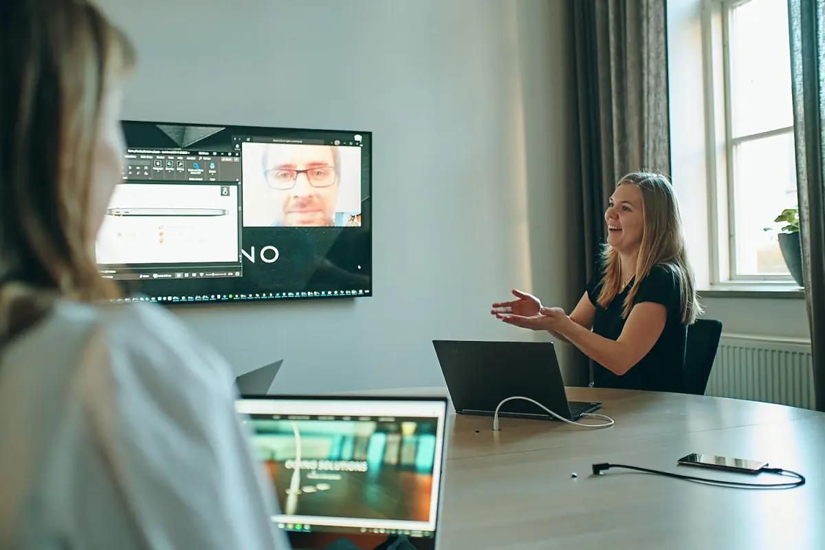 Door uw computer via USB aan te sluiten op de Ochno Power Conference, deelt u uw scherm en heeft u toegang tot alle audio/video-apparaten die in de ruimte aanwezig zijn. Het enige wat u hoeft te doen is video conference starten op het samenwerkingsplatform van uw keuze (Google Meet, Microsoft Teams, Zoom en nog veel meer).