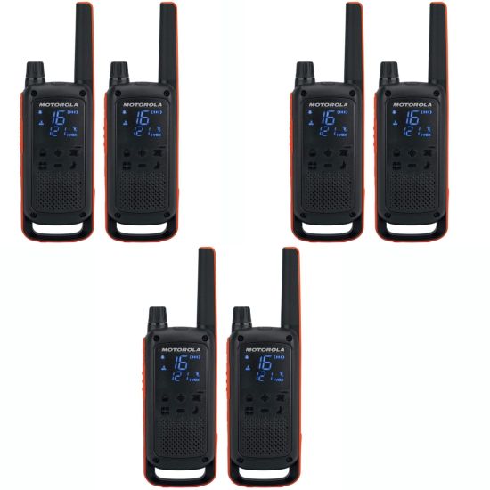 De 6 Portofoons Motorola TLKR worden geleverd zonder licentie. Dat wil zeggen, ze maken gratis communicatie mogelijk over een straal van maximaal 10 km zonder enige interferentie.