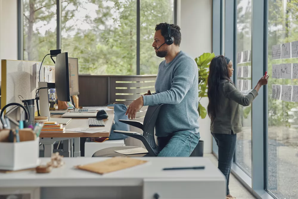 De Poly Savi 7420 is een headset DECT waarmee u kunt profiteren van een aanzienlijk verbeterd bereik in vergelijking met Bluetooth: tussen 100 en 180 meter buitenshuis. Ontworpen met microfoonarm ruisonderdrukking en dankzij Acoustic Fence- technologie van Poly filtert de headset al het omgevingsgeluid weg en laat uw beller alleen uw stem horen, waardoor hij ideaal is in een callcenter of open ruimte.