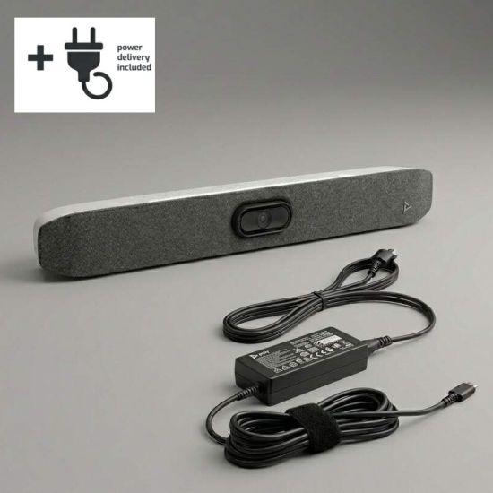 De USB Poly Studio V12 videobar bevat een hoogwaardige camera met een UHD 4K-resolutie, een 20MP-sensor en een gezichtsveld van 120°.