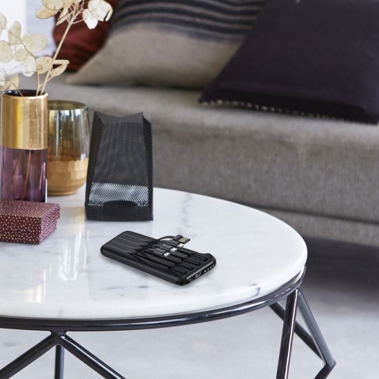 Powerbank met geïntegreerde kabels voor universeel gebruik
