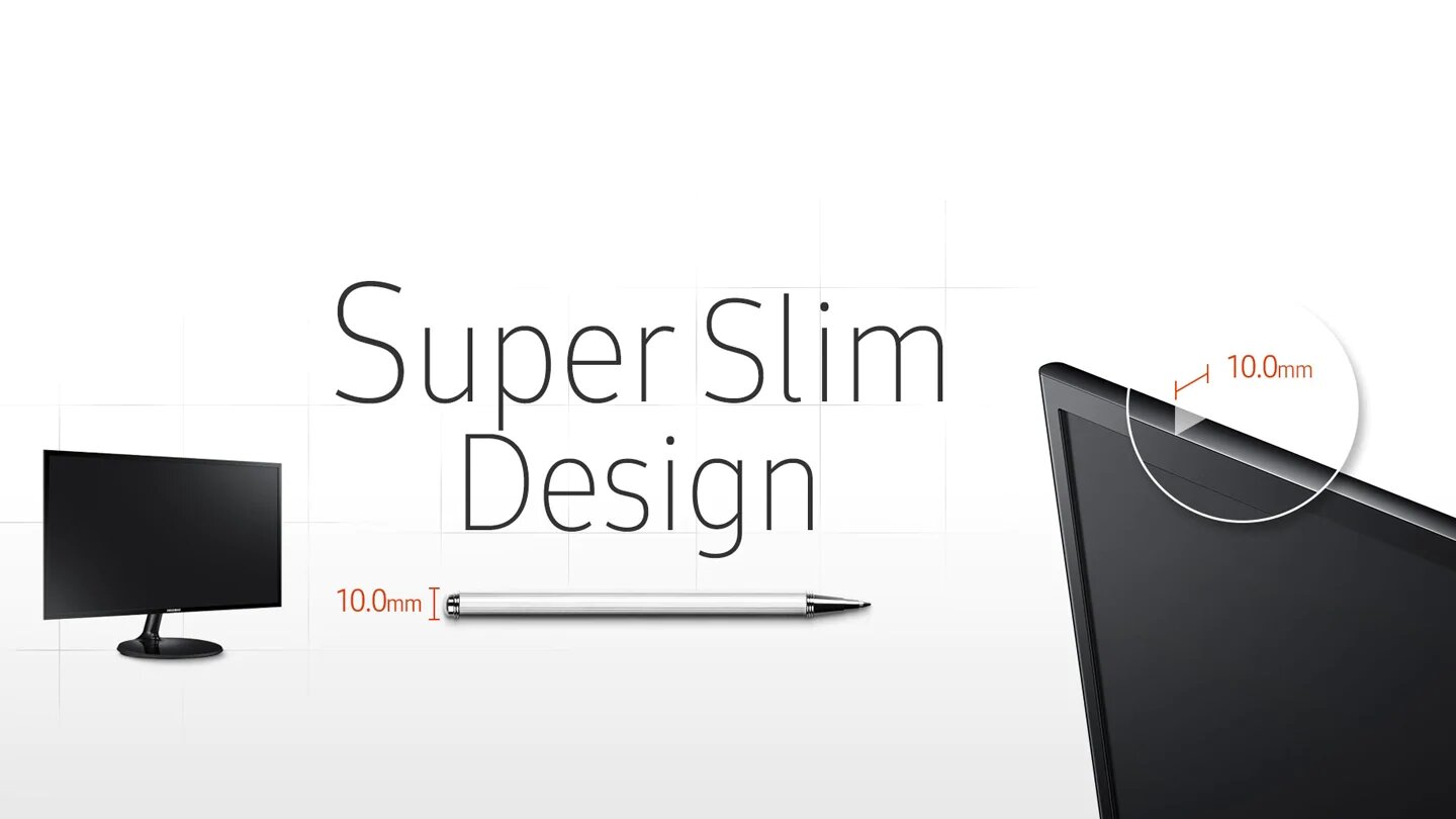 Het scherm S22F350F / S24F350F / S27F350F is een ultradun scherm van slechts 10 mm, wat het 50% dunner maakt dan andere oudere series. Het scherm is slank en elegant.