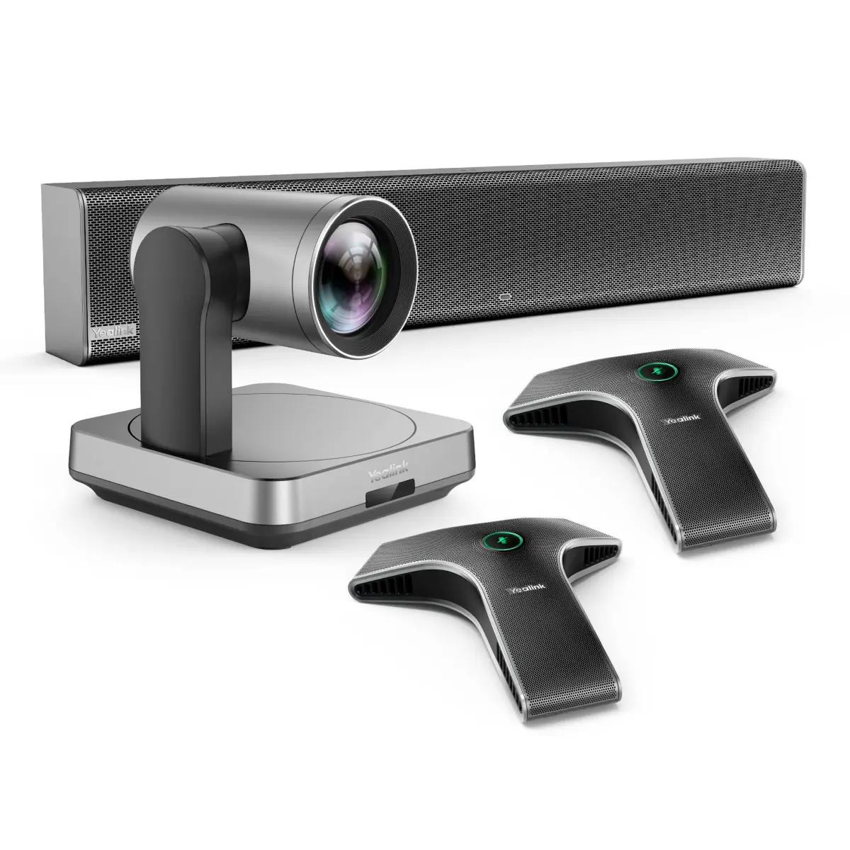 Met de Yealink video conference UVC84-BYOD-210-kit kunt u eenvoudig een vergadering grote vergaderzaal opzetten en videoconferenties houden via USB. Deze bestaat uit een camera PTZ, een soundbar en 2 centerpiece microfoons.